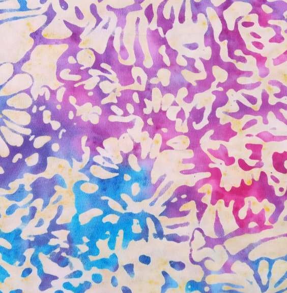 All Wacky Jacky's cotton and rayon batik are handstamped and handmade in a studio of Indonesian textile artisans. They won't fray under the needles, and your quilt will be machine washable (we've proven this!).