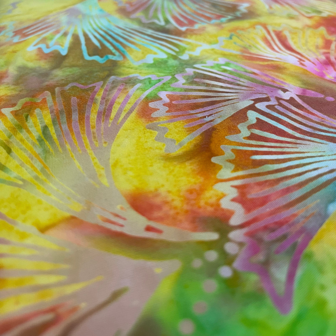 The batik is a unique, rainbow batik with a warm atmosphere. Our batik is made with the utmost care and precision, ensuring that your fabric will be used for your quilting or textile projects. . Each order unit indicates one (1) bolt containing 10meters of fabric.