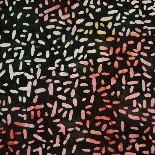 Gradient red rice on black background for your next quilting or textile project. It is made of 100% cotton from Indonesia, and locally-made and sourced, making it a sustainable fabric. Each (1) unit order states the quantity of 0.25m, which means you'll need to add up the quantity to 4 to get 1m.