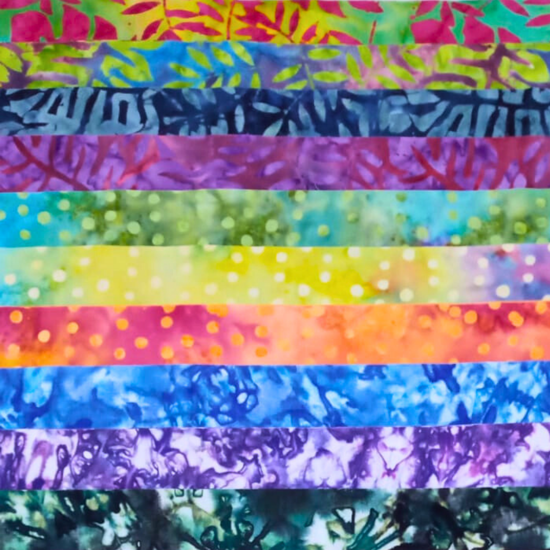 As cooling as Bali's beachside breeze, and these babies will give a warm, beautiful touch to your quilt. 🍃 Our Honey Bun are handmade from the finest 100% cotton batiks in Indonesia, and precut to your needs. Each Honey Bun includes 40 x 1.5 inch strips, so you can create a bold and beautiful design with ease. Shop now and unleash your creativity with our Wacky Honey Bun collection!