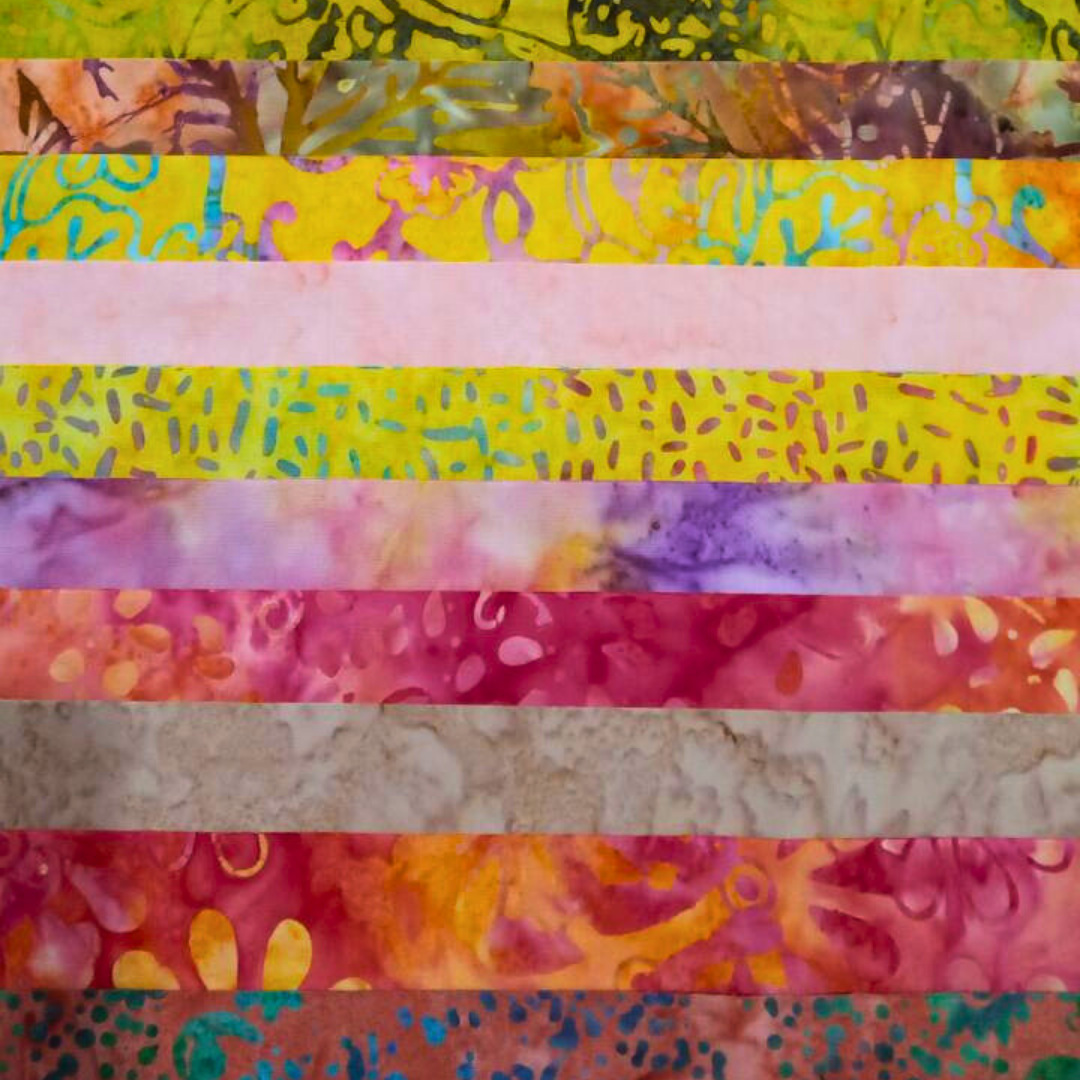 Elevate your quilt by these subtle, yet, gorgeous strips of Desert Sand. With warm and earthy tones, our Desert Sand is sure to add a touch of coziness to your quilt-as-you-go project. ♥️ Our Honey Bun are handmade from the finest 100% cotton batiks in Indonesia. and precut to your needs. Each Honey Bun includes 40 x 1.5 inch strips, so you can create a bold and beautiful design with ease. Shop now and unleash your creativity with our Wacky Honey Bun collection!
