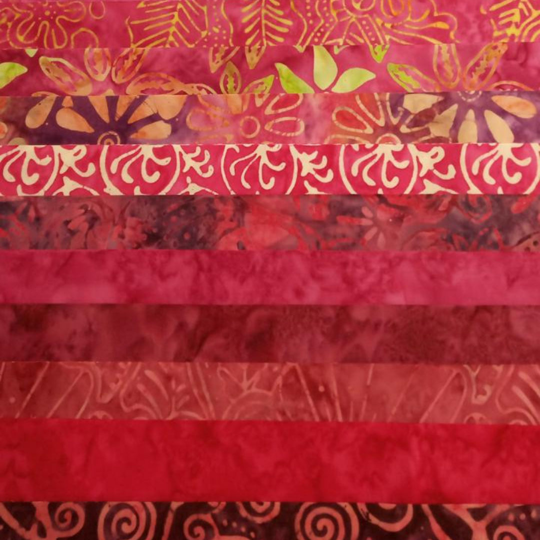 Sweeten up your quilting project with Strawberry Shortcake. With a mix of reds and pinks, this collection is perfect for creating a playful, whimsical, and of course when you're a pink lover like I am. 💗 Our Honey Bun are handmade from the finest 100% cotton batiks in Indonesia, and precut to your needs. Each Honey Bun includes 40 x 1.5 inch strips, so you can create a bold and beautiful design with ease. Shop now and unleash your creativity with our Wacky Honey Bun collection!