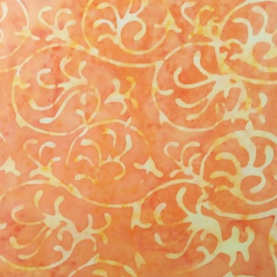 Lively and sweet orange tie dye paired with white tropical swirls is a batik block perfect for the summer ! Each (1) unit order states the quantity of 0.25m, which means you'll need to add up the quantity to 4 to get 1m.