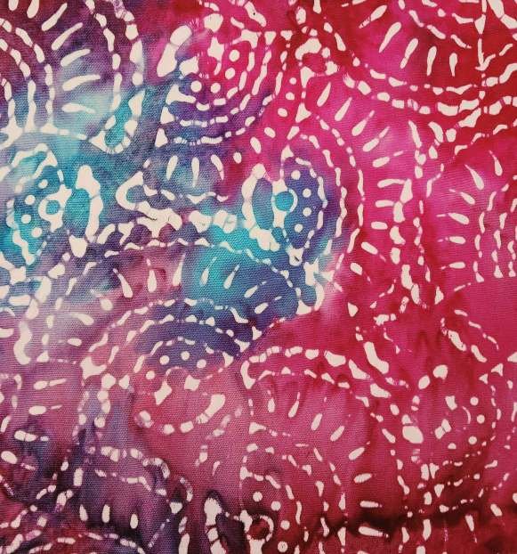 All Wacky Jacky's cotton and rayon batik are handstamped and handmade in a studio of Indonesian textile artisans. They won't fray under the needles, and your quilt will be machine washable (we've proven this!).