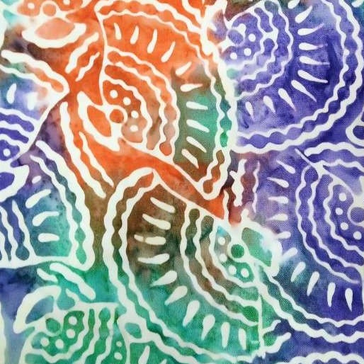 All Wacky Jacky's cotton and rayon batik are handstamped and handmade in a studio of Indonesian textile artisans. They won't fray under the needles, and your quilt will be machine washable (we've proven this!).