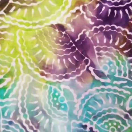 All Wacky Jacky's cotton and rayon batik are handstamped and handmade in a studio of Indonesian textile artisans. They won't fray under the needles, and your quilt will be machine washable (we've proven this!).