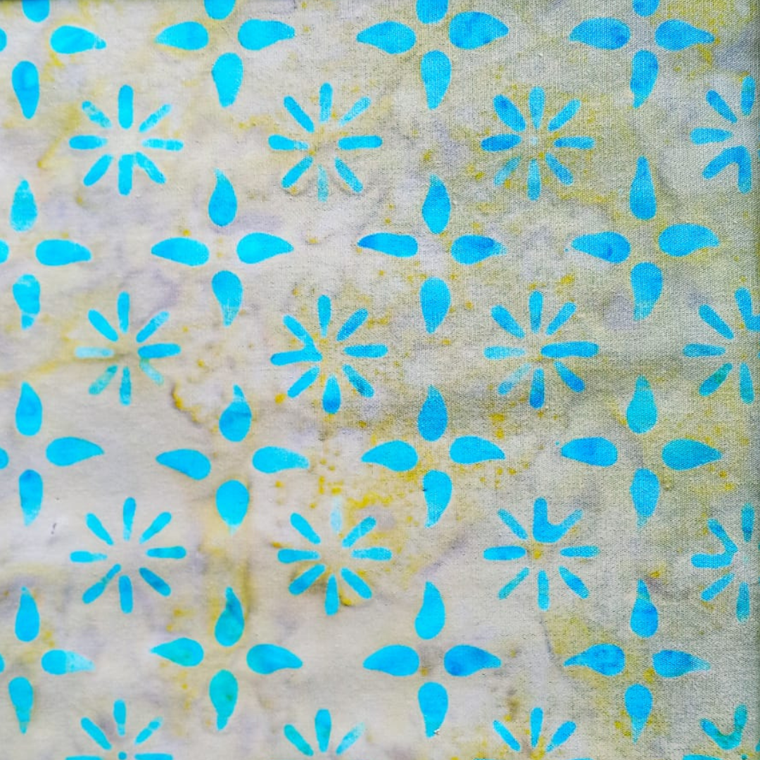 Tribal blue prints on top of a faded yellow tie-dye. Each (1) unit order states the quantity of 0.25m, which means you'll need to add up the quantity to 4 to get 1m.