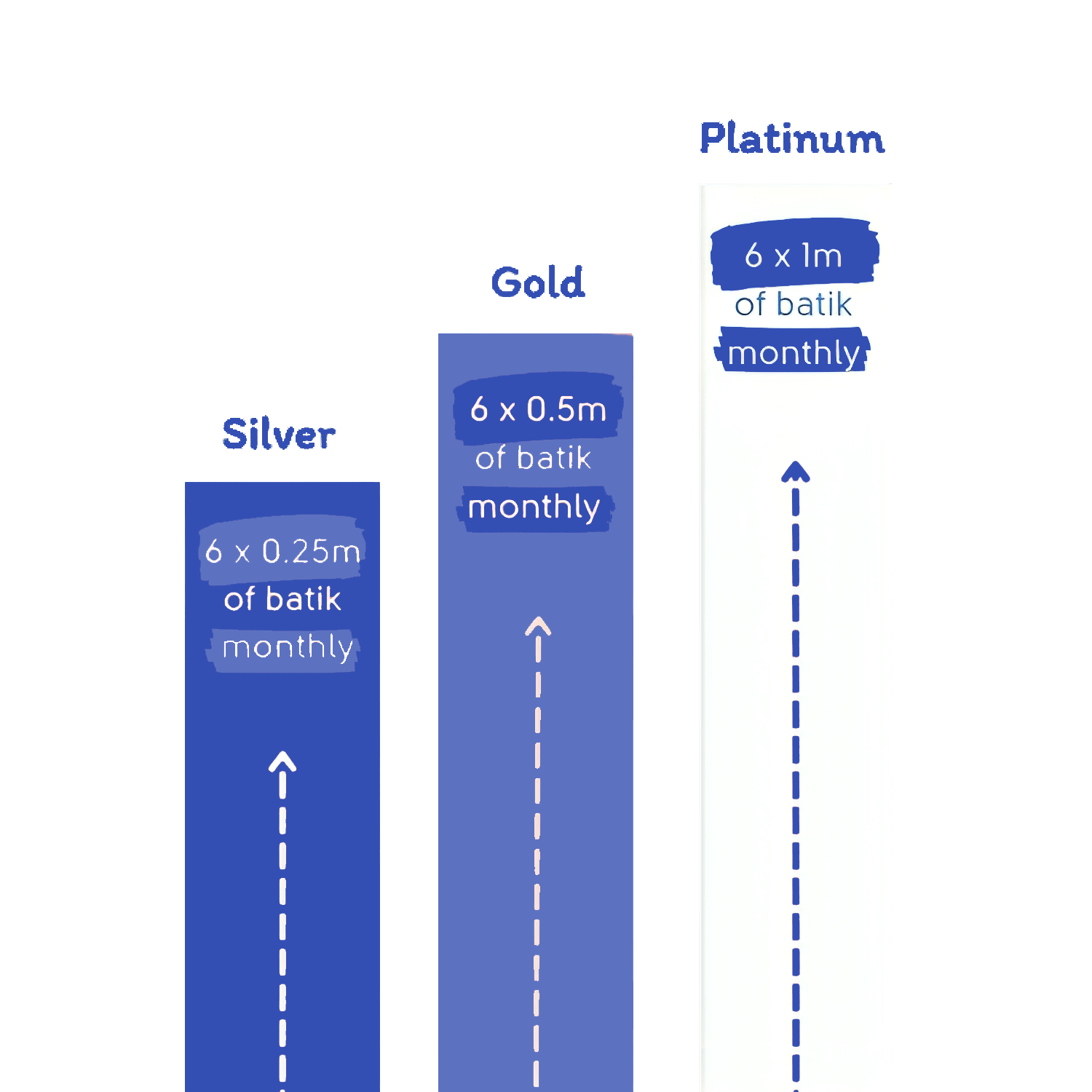 Every month we'll send a different range of fabrics, and chances are you'll like your batik next month!
